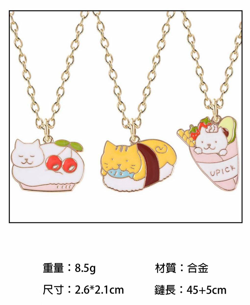 日系可愛貓貓卡通項鍊(蛋糕,壽司.可麗餅)