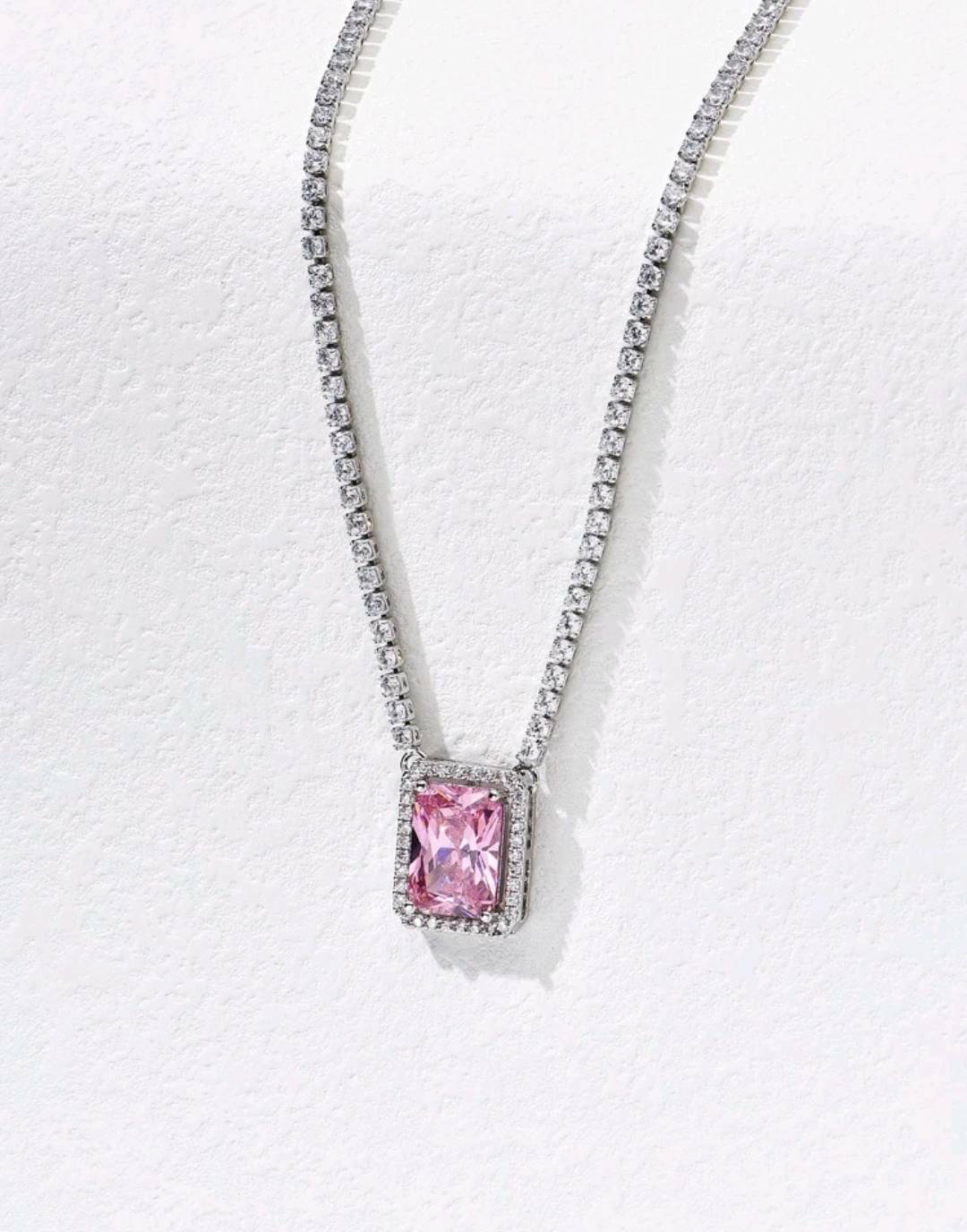 莫桑石滿鑽方糖項鍊 粉色/紫色